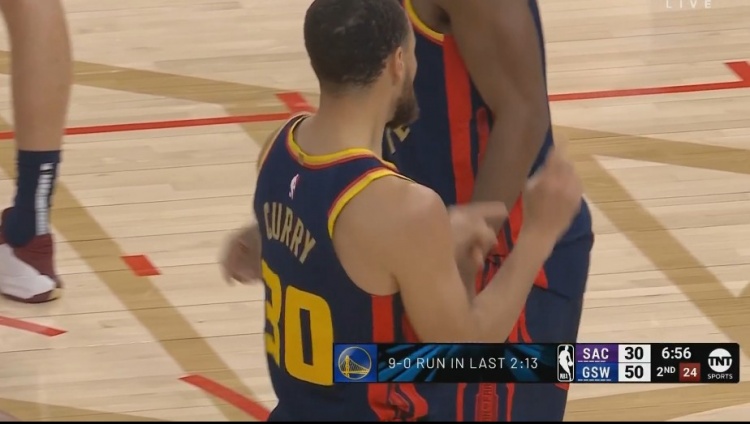 手感都給隊友分走了?庫里弧頂晃開防守 三分再鐵一個