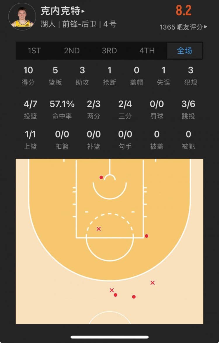湖人17號秀 道爾頓-克內(nèi)克特 登場21.9分鐘
