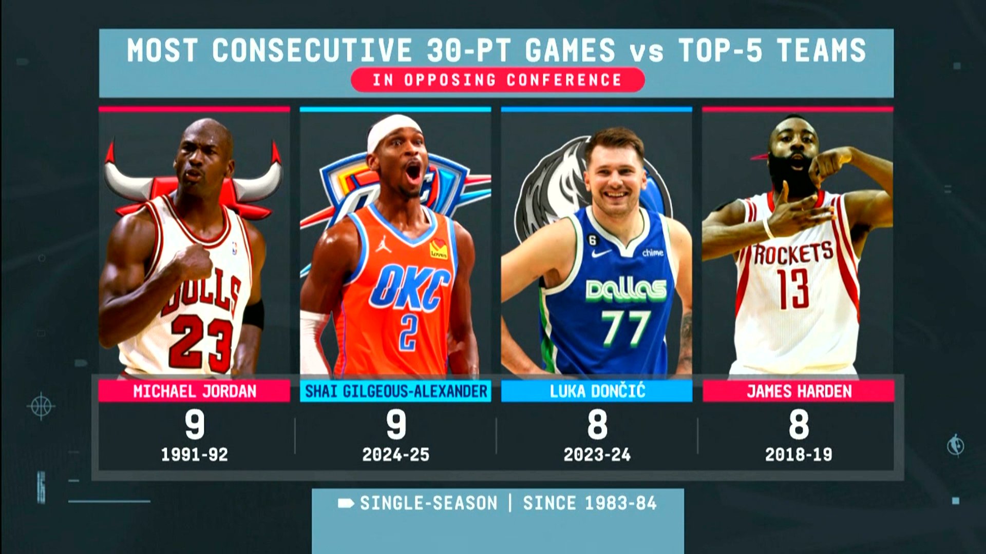 超東契奇+哈登!平喬丹??亞歷山大打?qū)Ψ桨雲(yún)^(qū)top5連續(xù)9場30+ !