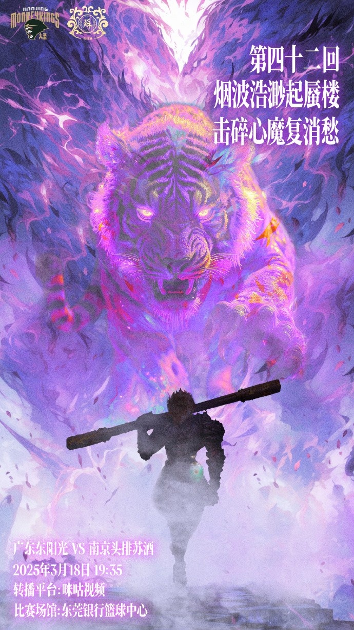 賽前,同曦男籃發(fā)布了本場比賽的預熱海報,配文:“第42回,煙波浩渺起蜃樓,擊碎心魔復消愁?!?/p>