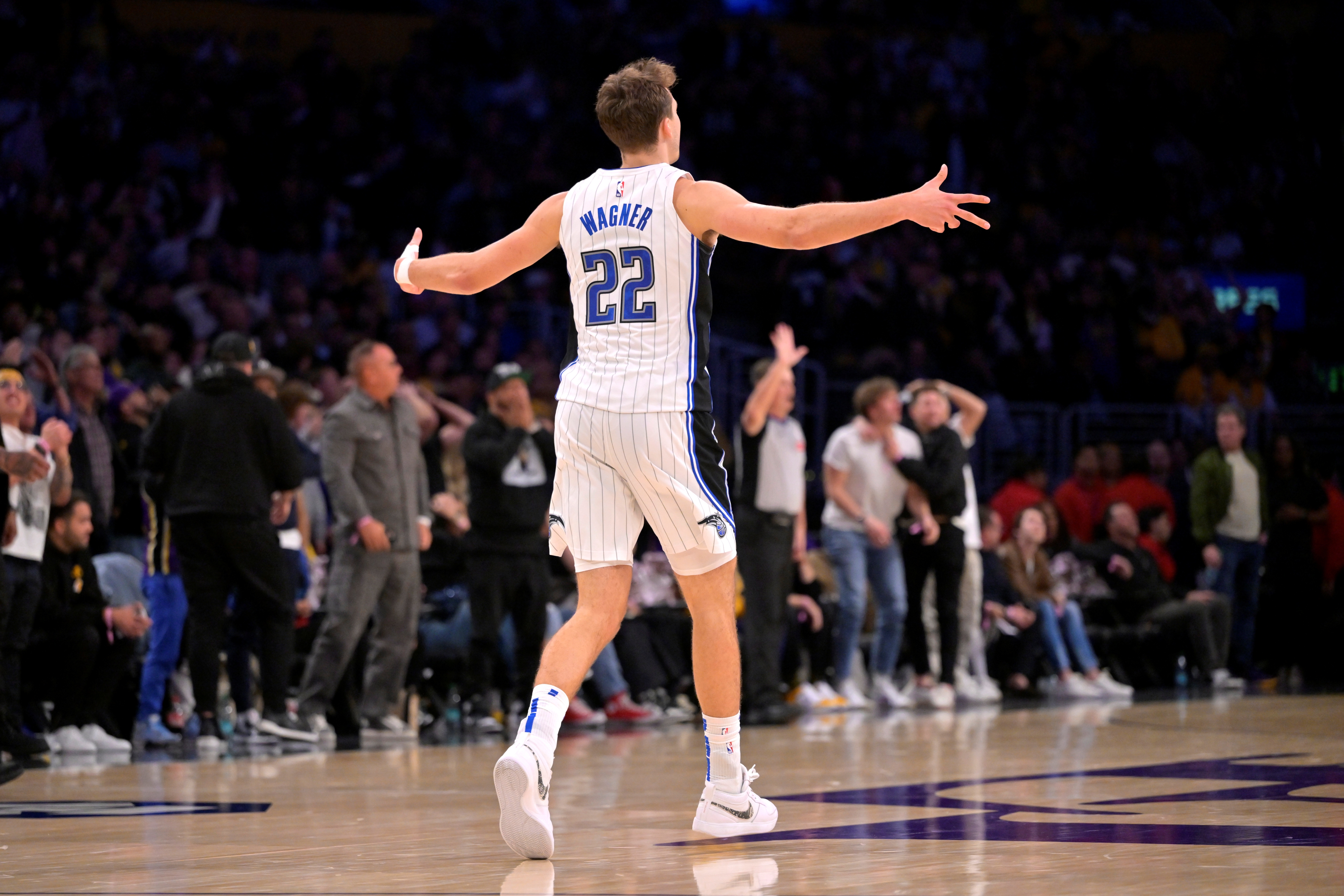 雷迪克教練及時挑戰(zhàn)了防守策略,不敢再任由小瓦格納和班凱羅點菜湖人小后衛(wèi),防擋拆點名采用了大延誤返位,小瓦格納和班凱羅接球后再上邊角夾擊返位,撲空位三分球——輪轉速率拉滿,盡可能逼魔術雙核在威脅禁區(qū)時出球,考驗魔術非重點人的邊角三分抽獎準度。