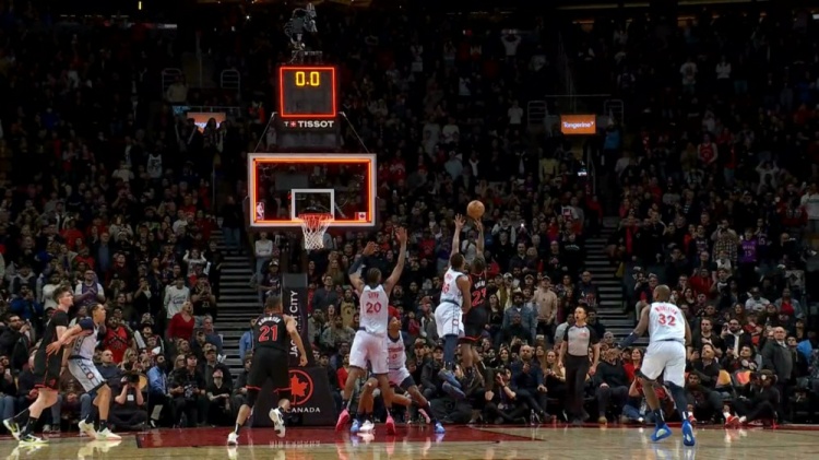 奇才隊垂頭喪氣地站在一旁,希望裁判的審查能取消這個進球。當(dāng)裁判做出裁決——謝德在時鐘指向0:00時仍有兩個手指觸球——奇才隊高興地跳了起來,猛龍隊從興奮變?yōu)檎痼@,噪音從喧鬧變?yōu)槔Щ蟮牡驼Z。