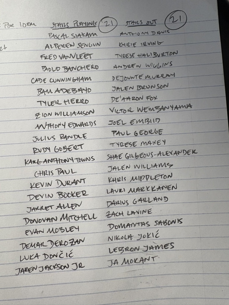 有21位球星上場|有21位球星未上場