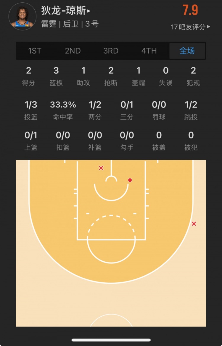 雷霆26號(hào)秀 狄龍-瓊斯 登場(chǎng)12.9分鐘
