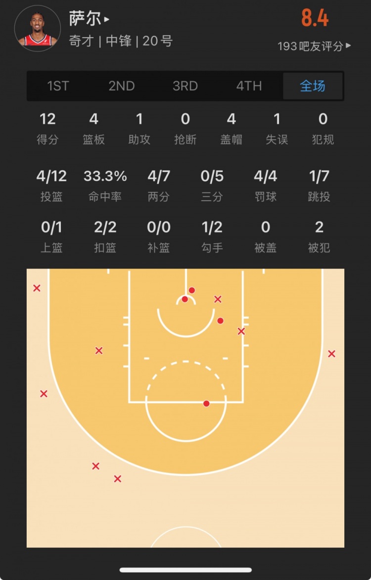 奇才榜眼秀 亞歷克斯-薩爾 登場(chǎng)24.7分鐘
