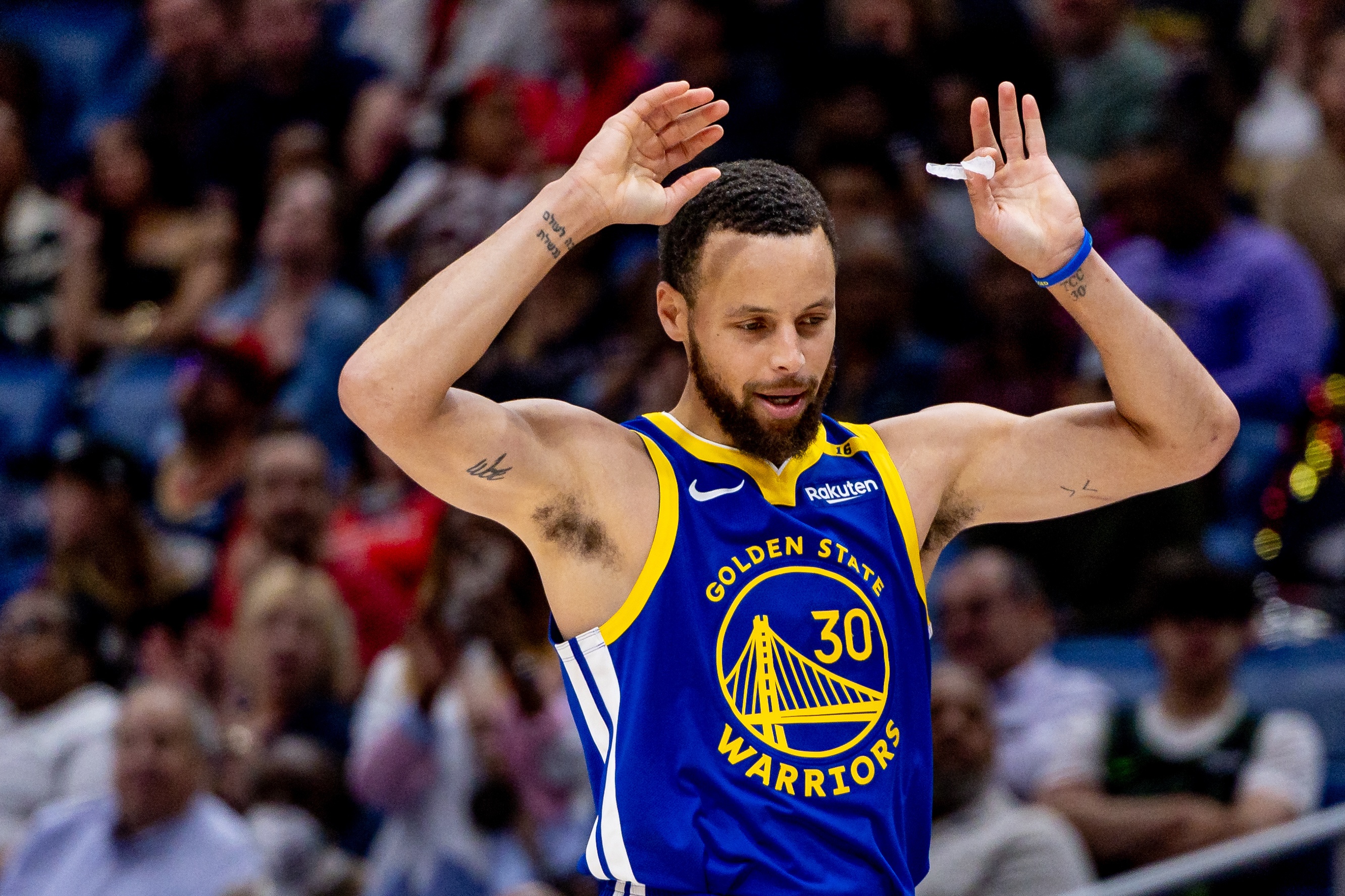 穩(wěn)!庫(kù)里上半場(chǎng)6中3得11分2板3助1斷 正負(fù)值+23全場(chǎng)最高