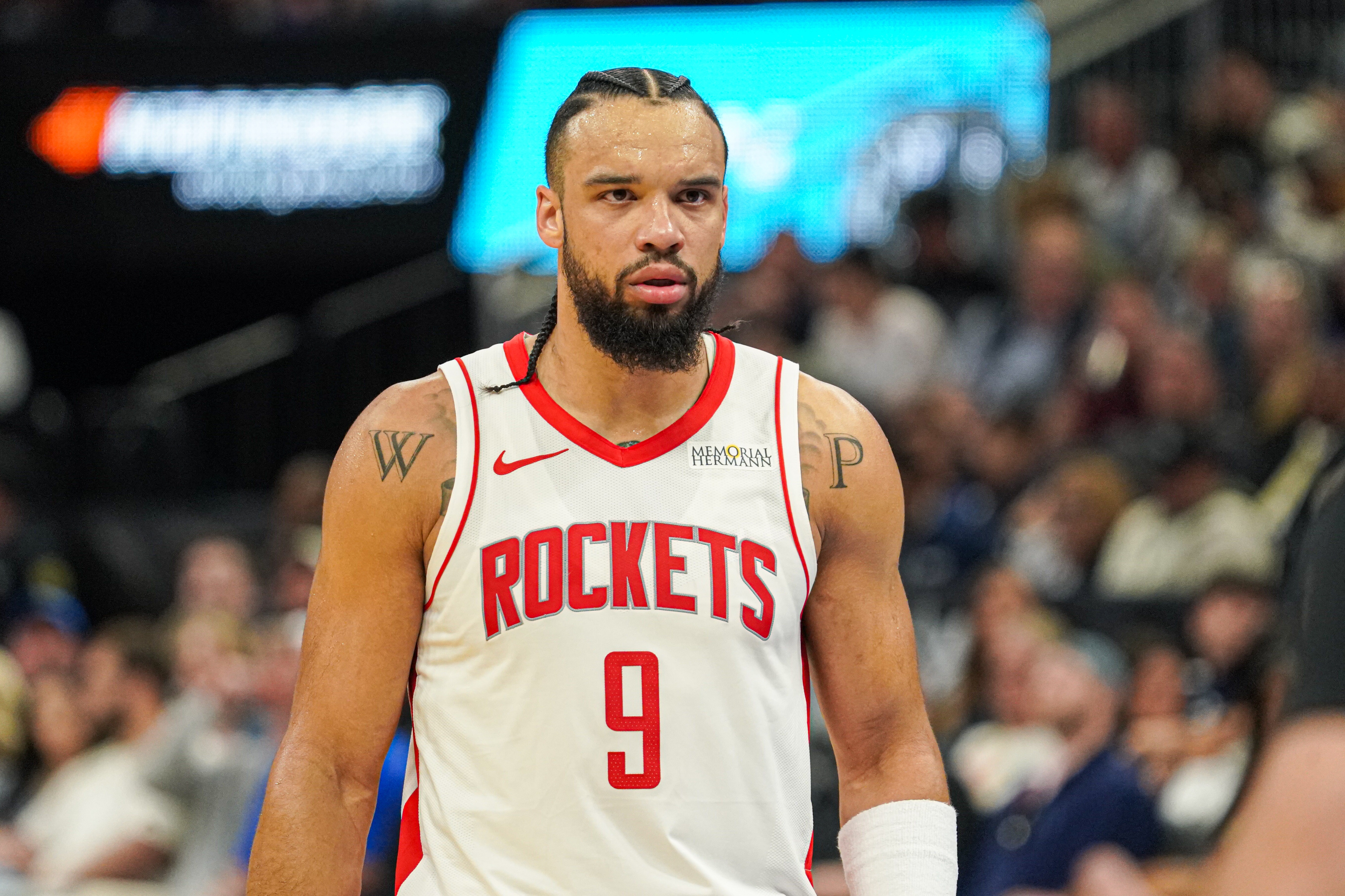 此役,火箭后衛(wèi)狄龍出戰(zhàn)36分鐘,投籃14中5,三分9中3,罰球4中3,得到16分5籃板1助攻1搶斷1蓋帽。