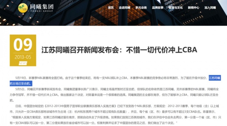 萬般無奈下,同曦隊在2013年3月將主場搬離南京,前往安徽合肥。此前,他們曾考慮留在江蘇省內(nèi),將主場搬至距離南京不過100公里的揚州。但如此一來,同曦隊只能在準入評分中獲得2分;而若搬到省會城市,則可以獲得3分。