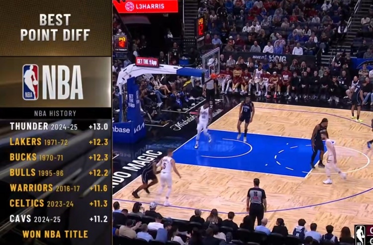 第2-6均當(dāng)季奪冠!本季雷霆場均凈勝13分暫列歷史第1 騎士第7