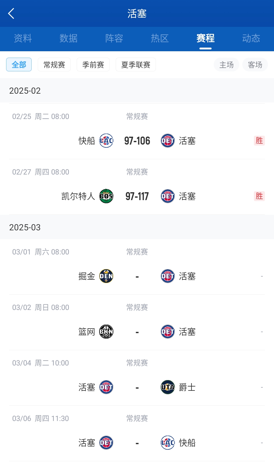 02月27日訊 今日NBA常規(guī)賽,活塞主場(chǎng)117-97擊敗凱爾特人。