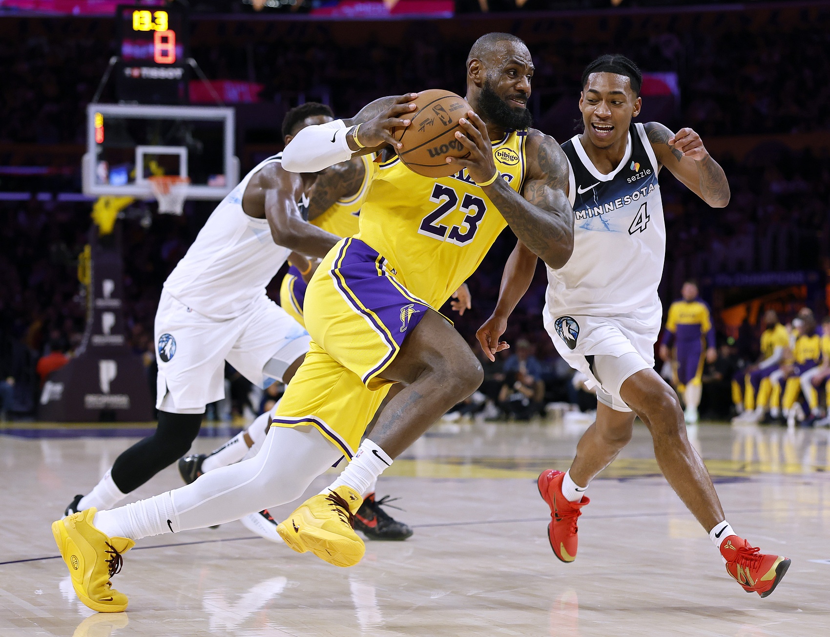 可是,當(dāng)40歲的詹姆斯在背靠背第二場(chǎng)以瘋狂持球強(qiáng)攻的方式命中9個(gè)運(yùn)動(dòng)戰(zhàn)進(jìn)球(只有2個(gè)是無(wú)球),你還是會(huì)感覺(jué)不可思議。什么年齡大了、體能不足,所謂的客觀規(guī)律放在詹姆斯身上都不成立。