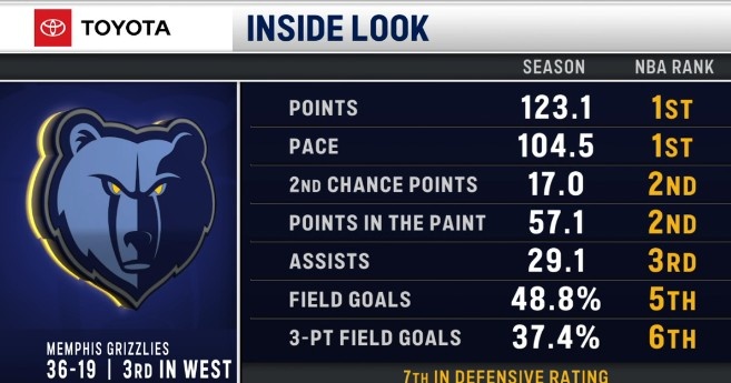 灰熊本賽季場(chǎng)均得分&回合數(shù)聯(lián)盟第1 二次進(jìn)攻&禁區(qū)得分聯(lián)盟第2