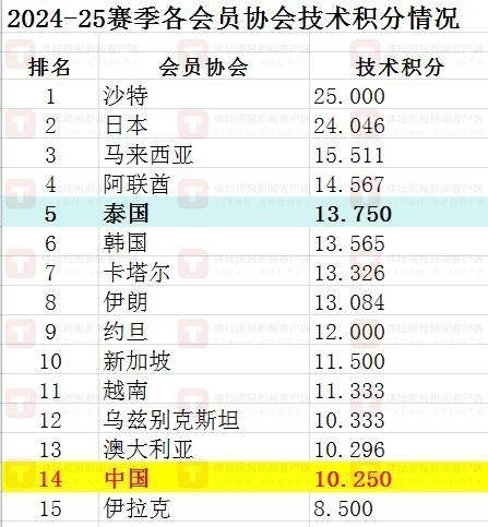 在各隊的技術(shù)積分揭曉后再累加,然后除以參賽隊數(shù),得出的平均分?jǐn)?shù)就是該會員協(xié)會在2024-25賽季的技術(shù)積分。