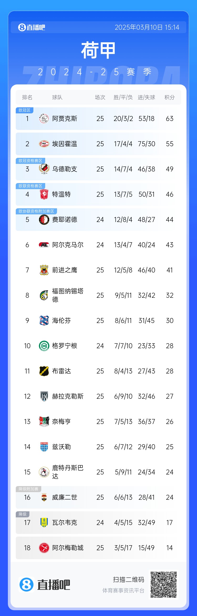 荷甲積分榜↓