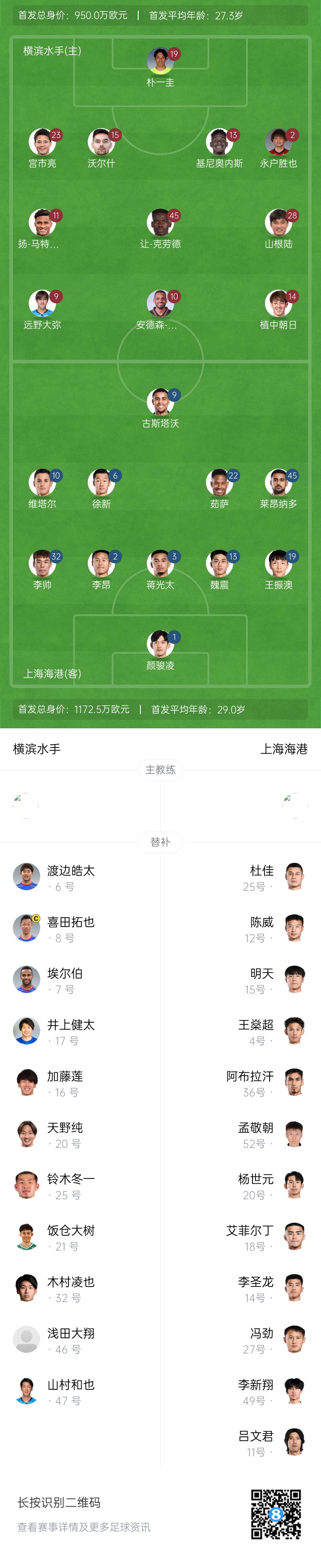 03月11日訊 北京時間18點,亞冠精英聯(lián)賽1/8決賽東亞區(qū)次回合,上海海港客場挑戰(zhàn)橫濱水手,賽前官方公布兩隊首發(fā)陣容。
