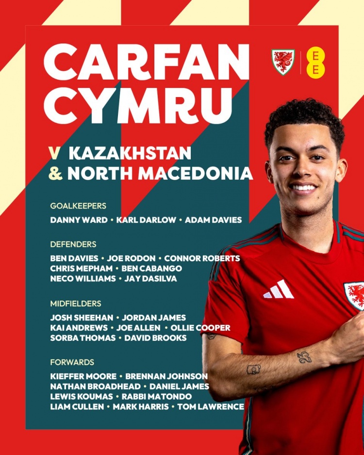 3月12日訊 威爾士新一期名單公布,布倫南-約翰遜、丹尼爾-詹姆斯、本-戴維斯、喬-阿倫等球員入選。
