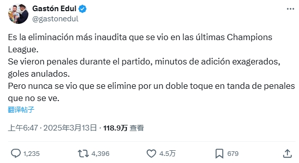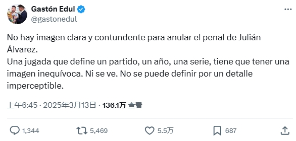 阿根廷國(guó)家隊(duì)跟隊(duì)記者埃杜(Gastón Edul)在社媒就此表達(dá)了自己的看法: