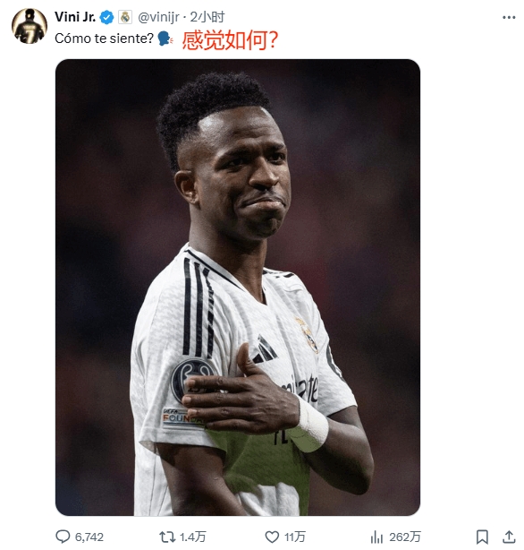 賽后維尼修斯在社媒連續(xù)更新4條動(dòng)態(tài)(推特3條,ins1條)。