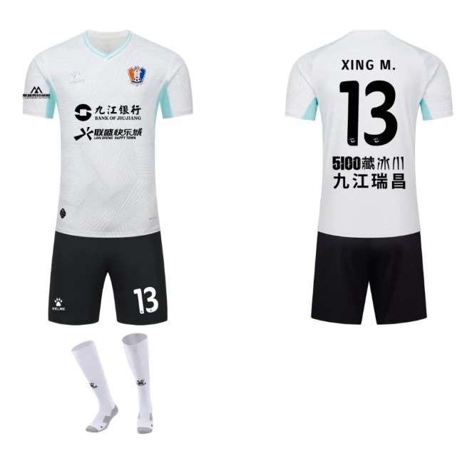 第二客場戰(zhàn)袍以皓月白為主色調(diào),搭配淺藍色細節(jié)及黑色比賽短褲,簡潔大氣,沉穩(wěn)中透露著鋒芒。球衣設計靈感來源于江西廬山著名的云霧景觀,寓意著球隊在客場比賽中披荊斬棘,乘風破浪。