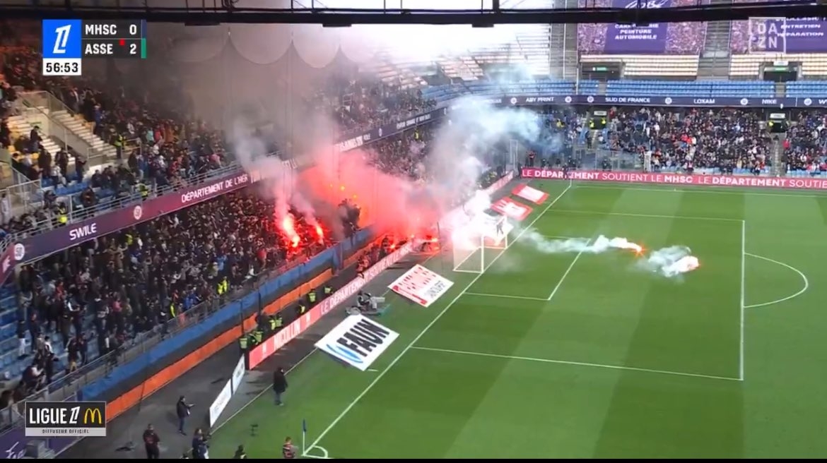 官方:因球迷放煙花引發(fā)小型火災(zāi),蒙彼利埃vs圣埃蒂安比賽腰斬