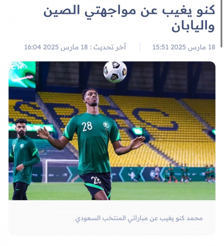 【相關(guān)】沙特媒體:沙特國腳中場穆罕默德-卡努因傷缺席對(duì)陣中國、日本