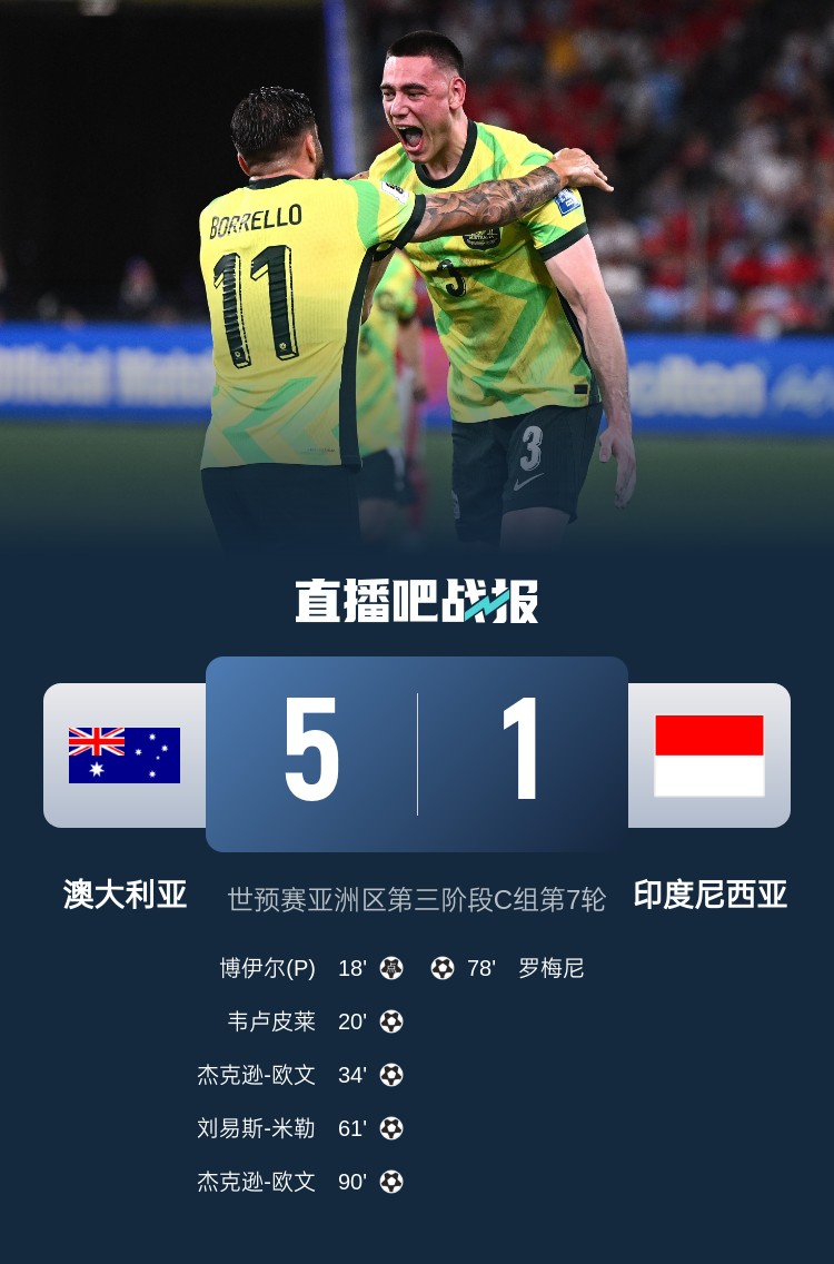 3月20日訊 世預(yù)賽亞洲區(qū)第三階段C組第7輪,10名歸化球員首發(fā)的印尼隊1-5慘敗澳大利亞隊。