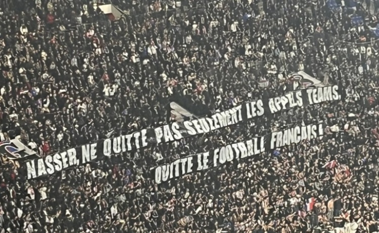 RMC:部分里昂球迷拉橫幅,要求巴黎主席納賽爾退出法國(guó)足球