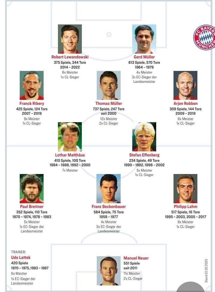 2月24日訊 拜仁迎來俱樂部成立125周年紀念,《踢球者》也評出了一套拜仁歷史最佳陣容。