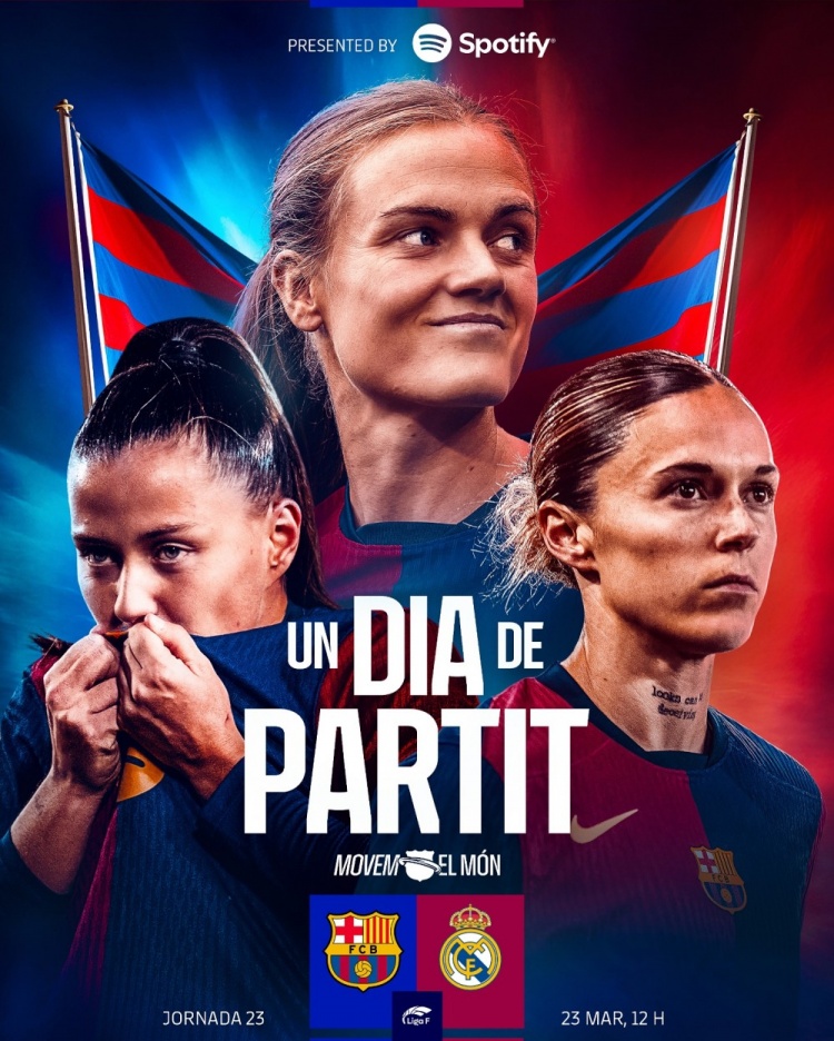 巴薩女足官方社媒發(fā)布了為此役制作的海報(bào),伊蕾妮-帕雷德斯、馬麗亞-萊昂、克勞迪婭-皮納出鏡。