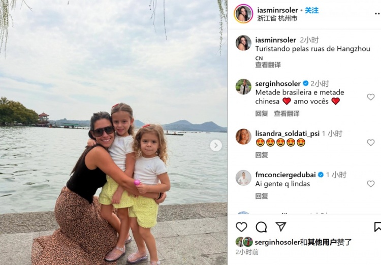 妻子帶女兒逛杭州!塞爾吉尼奧評(píng)論:一半巴西人,一半中國(guó)人
