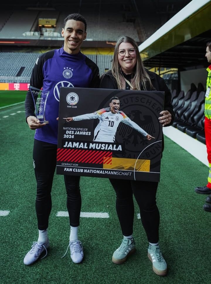 此外,在去年歐國(guó)聯(lián)德國(guó)7-0波黑的比賽中,穆西亞拉當(dāng)選了全場(chǎng)最佳球員,他在昨天一起領(lǐng)取了這兩座獎(jiǎng)杯。