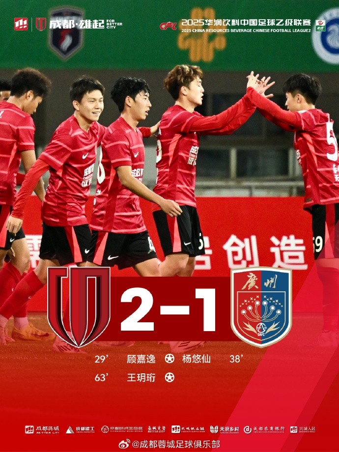 上半場余彥鋒獻助攻,顧嘉逸進球建功。隨后對方打入一球,半場比分1-1。下半場顧嘉逸助攻,王玥珩進球,比分來到2-1,蓉城青年軍奮勇拼搏,將領(lǐng)先的比分保持到最后一刻!衷心感謝今日到場為蓉城將士們吶喊助威的4827位球迷朋友們!成都,雄起!