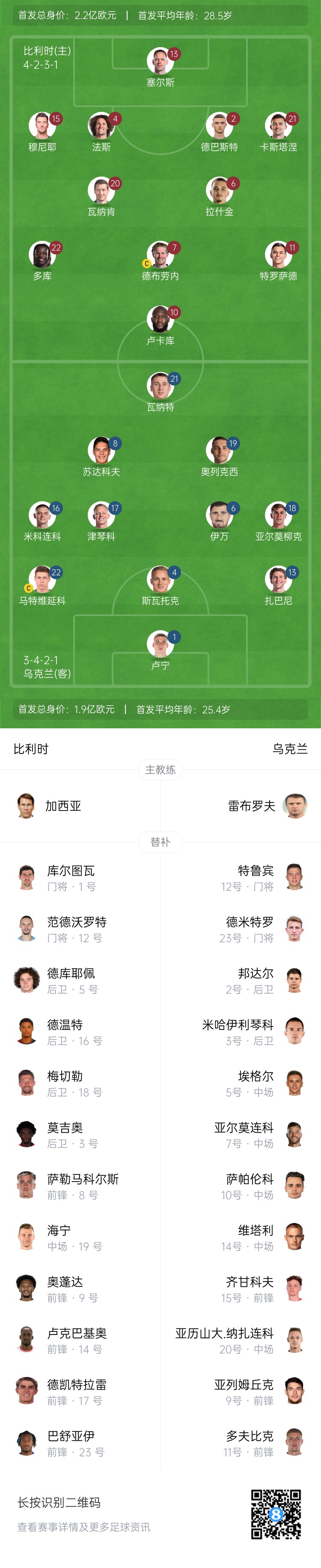 3月24日訊 北京時(shí)間03:45,歐國聯(lián)A聯(lián)賽升級賽次回合,比利時(shí)主場對陣烏克蘭。首回合比利時(shí)客場1-3不敵烏克蘭。賽前官方公布了雙方的首發(fā)名單。