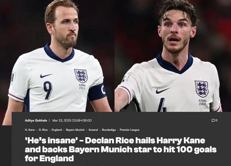 3月24日訊 英格蘭隊(duì)2-0戰(zhàn)勝阿爾巴尼亞的世預(yù)賽中,凱恩打進(jìn)了代表三獅軍團(tuán)的第70個(gè)進(jìn)球。賴斯在談到凱恩時(shí)表示,凱恩一定能夠完成國(guó)家隊(duì)百球成就。