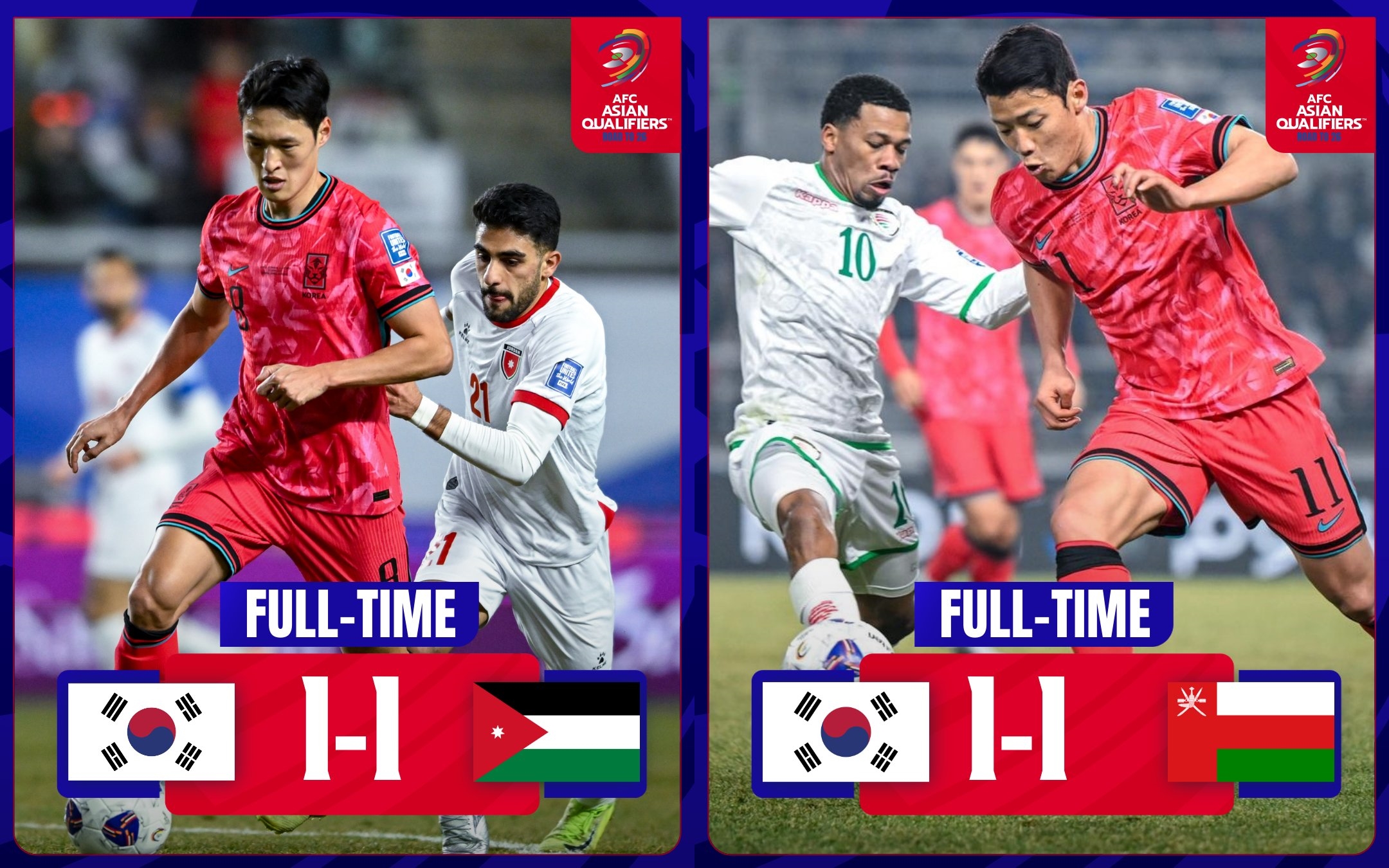 03月25日訊 世預(yù)賽亞洲區(qū)第三階段B組,韓國在主場連續(xù)遭遇阿曼和約旦1-1逼平,無緣提前晉級世界杯。