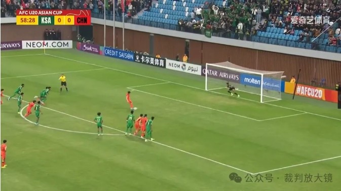 視頻中也能看出提前進(jìn)入的沙特隊員將球解圍了,有人說這不是觸球了嗎?其實規(guī)則的提前進(jìn)入的隊員觸球或與對方爭搶球這是一個主語,也就是說以上兩種情況判罰的前提是這兩種行為阻止了對方隊員得分、嘗試進(jìn)球得分或創(chuàng)造進(jìn)球得分情況的任意一種。對提前進(jìn)入的行為應(yīng)采用對守門員提前移動的判罰原則,即:僅在造成阻礙時才被判罰違規(guī)。