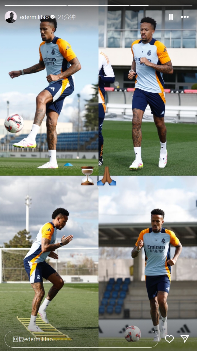 3月26日訊 今日米利唐更新個(gè)人社媒,曬出了自己恢復(fù)場(chǎng)地訓(xùn)練的照片,并配上了沙漏和祈禱的表情。