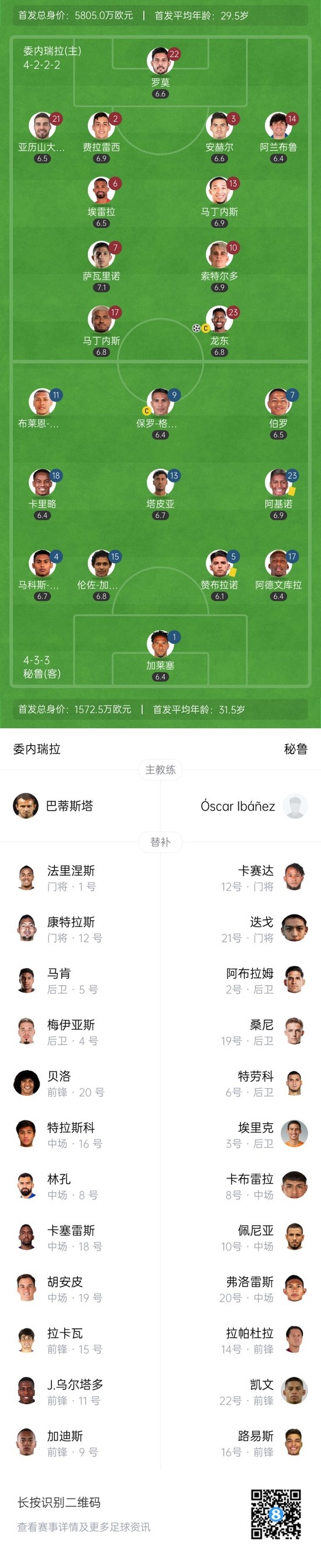 3月26日訊 北京時間3月26日08:00,世預(yù)賽南美區(qū)第14輪委內(nèi)瑞拉迎戰(zhàn)秘魯?shù)谋荣?,上半場龍東失單刀+點(diǎn)射破門首開記錄,布賴恩雷納破門無效,半場結(jié)束,委內(nèi)瑞拉1-0秘魯。