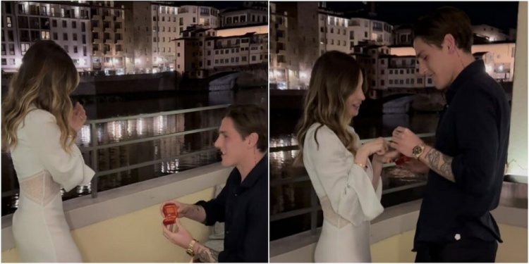 扎尼奧洛在社媒發(fā)布了自己向薩拉求婚的照片,求婚地點是佛羅倫薩著名景點老橋。當時扎尼奧洛單膝下跪,并把戒指戴在薩拉的手指上。扎尼奧洛還配文稱:“現(xiàn)在和永遠。”
