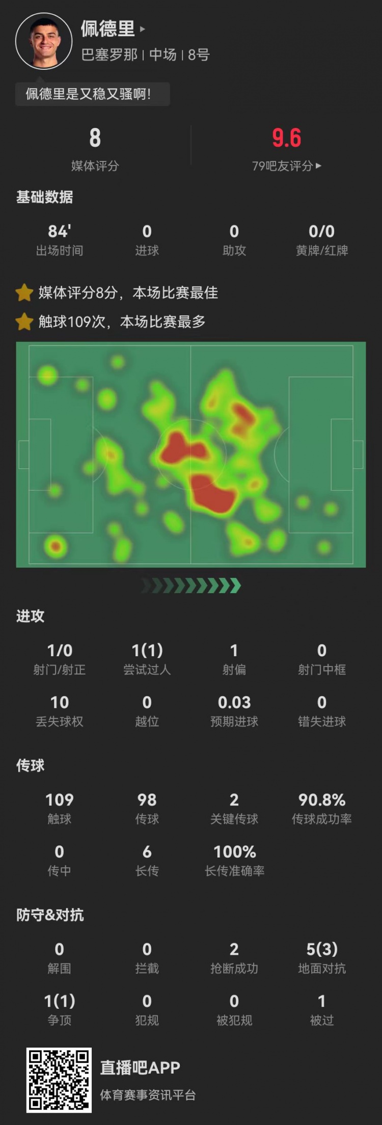 當選西甲官方全場最佳!佩德里本場2關鍵傳球+6長傳6成功+2搶斷