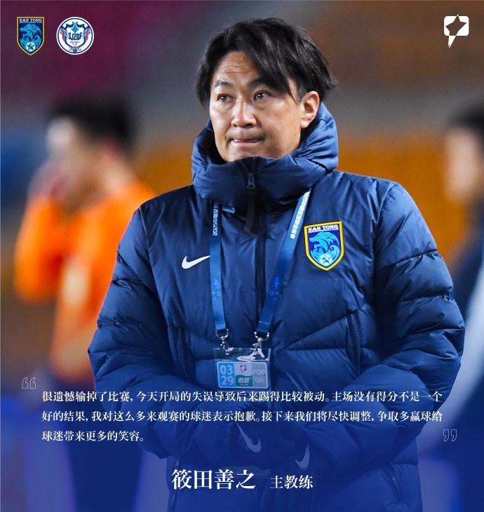 3月29日訊 北京時間3月29日19點30分,中甲第2輪,石家莊功夫2-0擊敗南通支云。賽后,南通支云主帥筱田善之出席了新聞發(fā)布會。