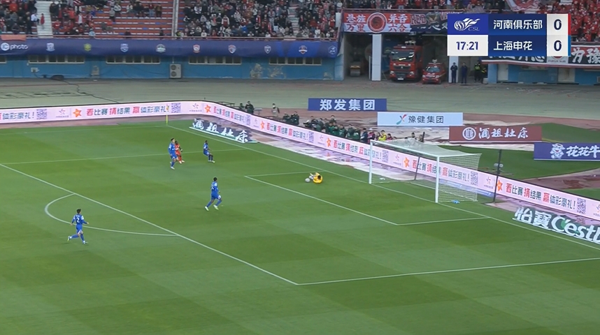 03月29日訊 中超第3輪,河南vs申花。比賽第17分鐘,阿奇姆彭邊路超車蔣圣龍,隨后小角度打門被撲。