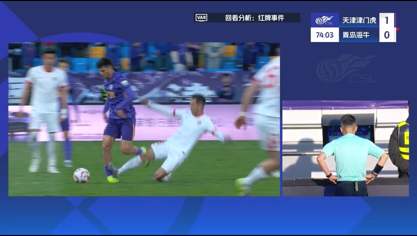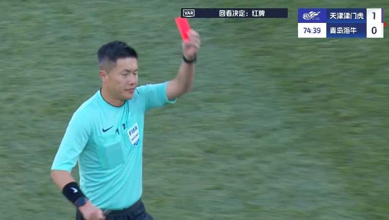 比賽第71分鐘,林創(chuàng)益亮鞋底飛鏟薩爾瓦多支撐腿,裁判先是出示黃牌,后經(jīng)VAR改判將其直紅罰下,海牛僅剩9人應(yīng)戰(zhàn)。此前,在上半場(chǎng)第42分鐘,金洋洋已經(jīng)因鏟球犯規(guī)被直紅罰下。