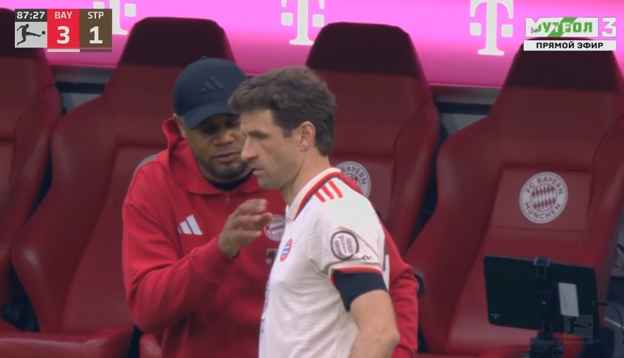 伊藤洋輝是第58分鐘替換格雷羅登場的,拜仁第85分鐘用完了最后的換人名額。孔帕尼也明白這一點(diǎn),他把穆勒叫到場面交代一下站位。