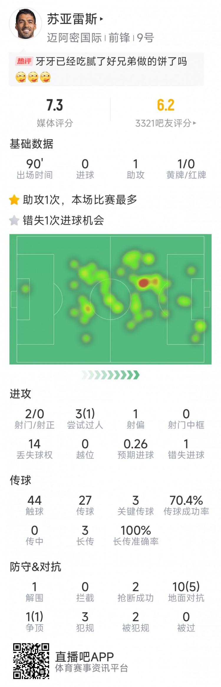 蘇亞雷斯本場(chǎng)數(shù)據(jù):