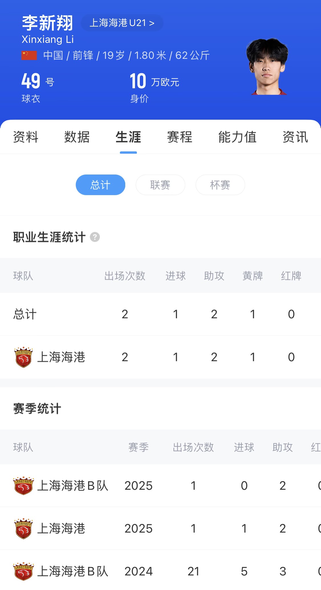 被遺漏了?海港19歲前鋒李新翔U系列國字號經(jīng)歷為0,未得到過征召