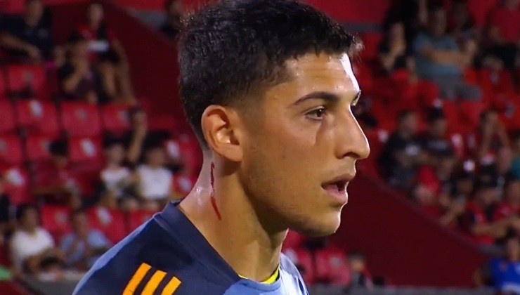 4月1日訊 在本周一進行的阿甲聯賽,博卡門將被對方球迷丟下的玻璃劃傷脖子后流血。