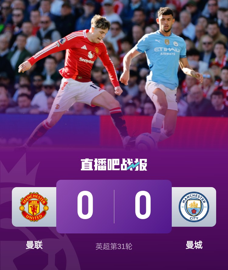 曼聯(lián)0-0曼城近4場(chǎng)曼市德比不敗 藍(lán)月亮無(wú)緣連勝仍距前四1分