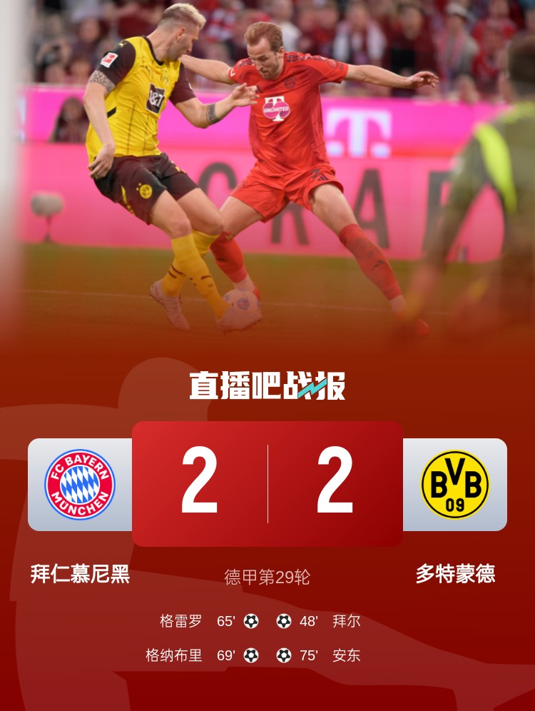 拜仁2-2多特6分領(lǐng)跑 格納布里一條龍破門(mén)金玟哉漏人致丟球