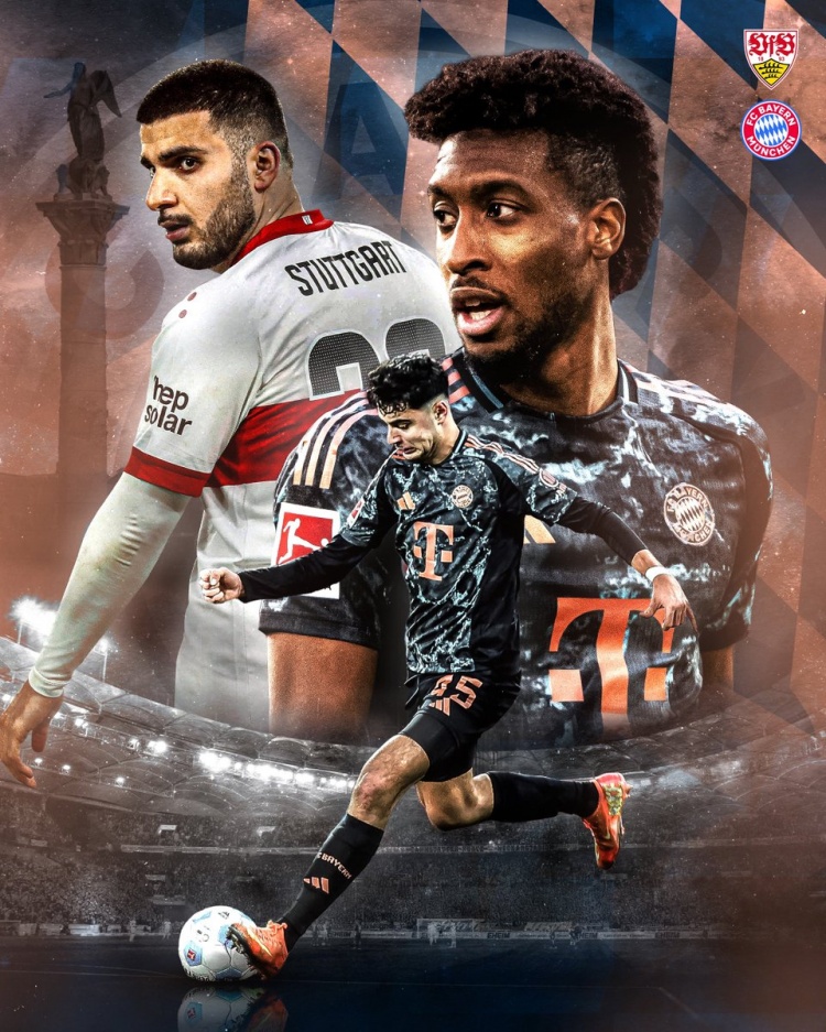 拜仁社媒發(fā)布為此役制作的海報(bào),科曼、帕夫洛維奇以及斯圖加特前鋒翁達(dá)夫出鏡。